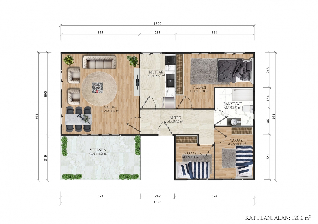 • 120 m² kullanım alanı