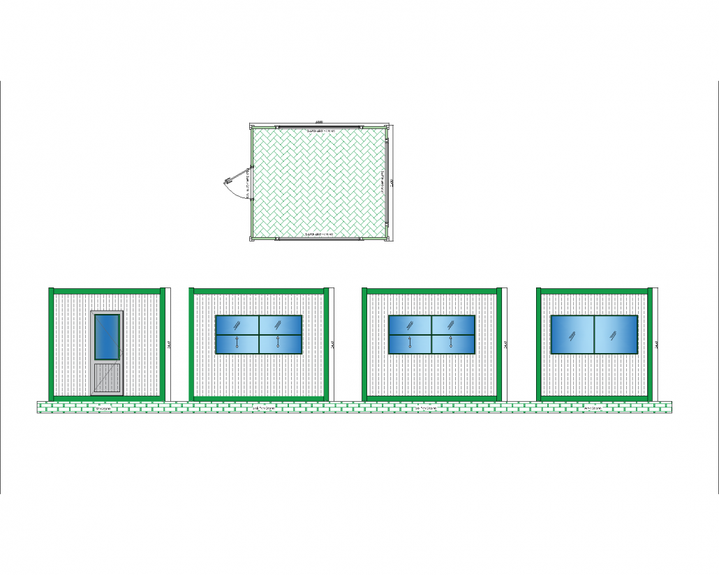 Bu panel kabin modeli, geniş iç alanı ve ferah tasarımıyla hem ofis hem de geçici yaşam alanı ihtiyaçlarını karşılamak için idealdir. 3000 mm genişliğindeki kabin, iş yerleri, şantiyeler, etkinlik alanları gibi farklı kullanım alanlarına uygundur. Görseldeki tasarım, geniş pencereleri ile doğal ışık alımını maksimum düzeye çıkararak aydınlık ve konforlu bir ortam sağlar. Pencereler aynı zamanda havalandırmayı kolaylaştırır, bu sayede iç mekanda ferahlık sağlanır.
