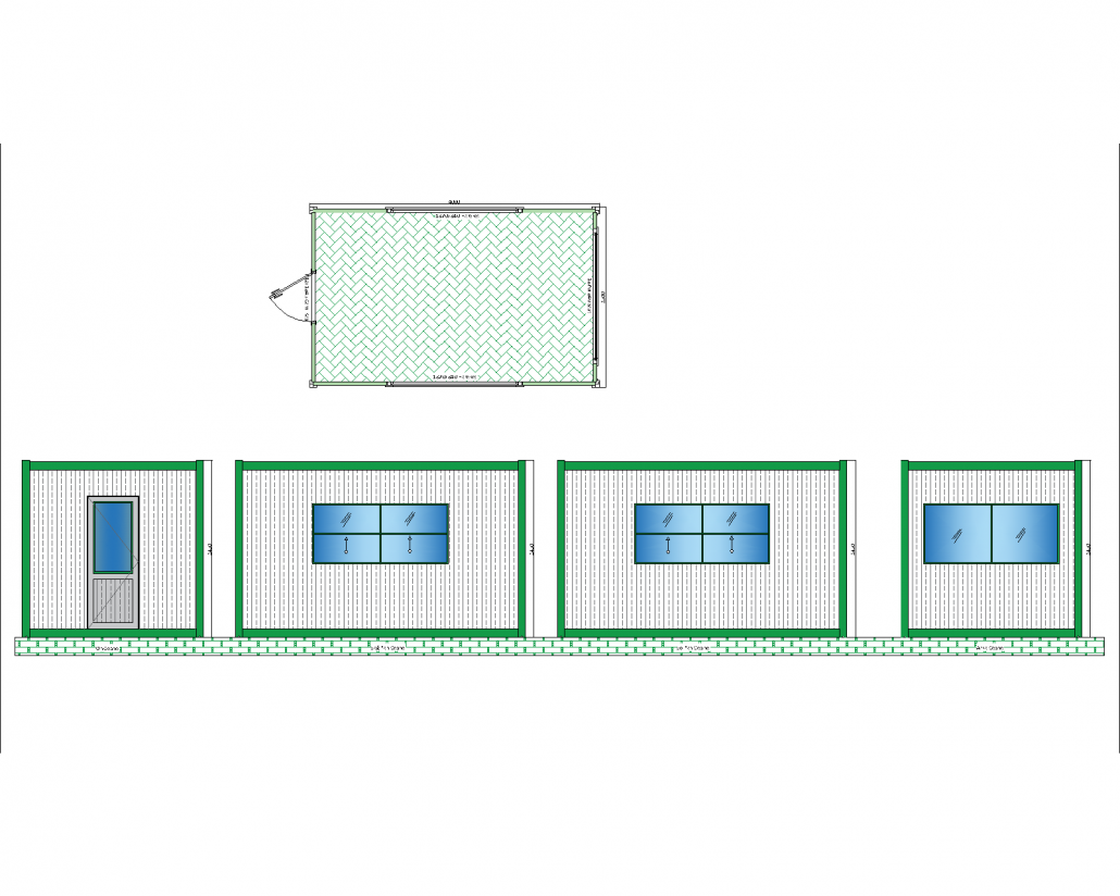 Bu panel kabin modeli, geniş iç hacmi ve çok yönlü tasarımı ile çalışma alanları, ofisler veya geçici konaklama yerleri için ideal bir çözümdür. Görselde görüldüğü üzere, 2500×4000 mm genişlikteki yapısı sayesinde ferah bir kullanım alanı sunmaktadır. Ön cephesinde yer alan giriş kapısı ve geniş pencereler, doğal ışık akışını artırarak iç mekanda aydınlık ve ferah bir ortam yaratır. Aynı zamanda pencere konumlandırmaları, uygun havalandırma imkanı sağlar ve kullanıcıya konforlu bir iç mekan sunar.