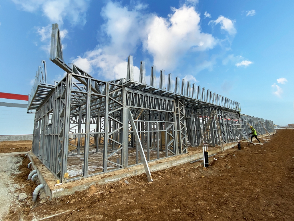 En el marco de este proyectode 2.500 m², Pramo construyó edificios administrativos antisísmicos y duraderos utilizando un sistema de acero ligero. Estos edificios están diseñados con un enfoque arquitectónico moderno y combinan estética y funcionalidad.
