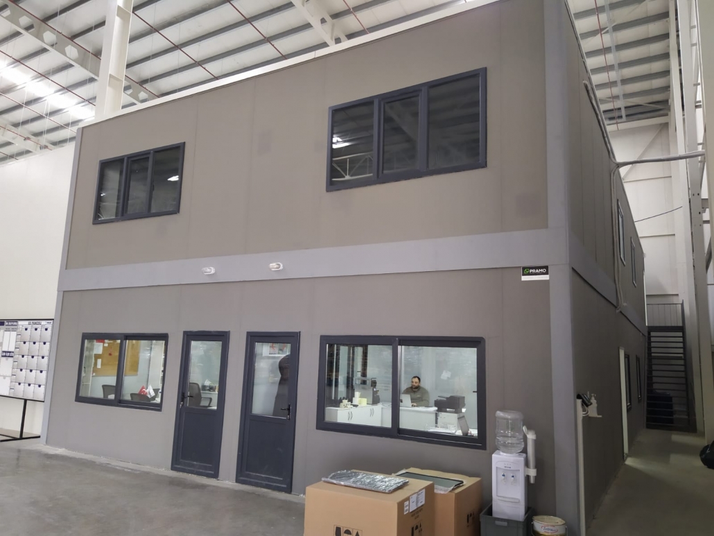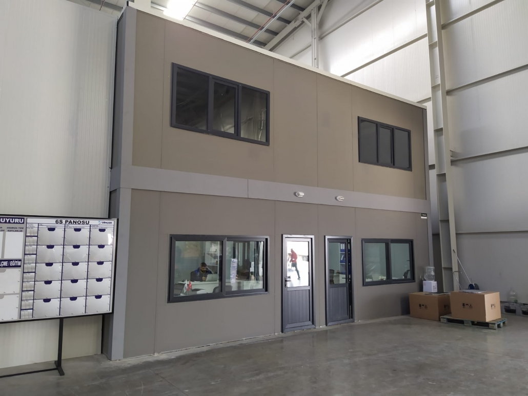 Sancaktepe Factory Office Project es uno de los proyectos en los que Pramo Prefabrik ofrece soluciones rápidas y eficaces en el ámbito industrial. Situada en Estambul, esta estructura de oficinas de 400 m2 y doble planta está diseñada para apoyar las operaciones en la fábrica y hacer más eficientes los procesos de gestión. La estructura sin tejado se integra en la estructura existente de la fábrica y aprovecha las zonas de uso con la máxima eficacia.