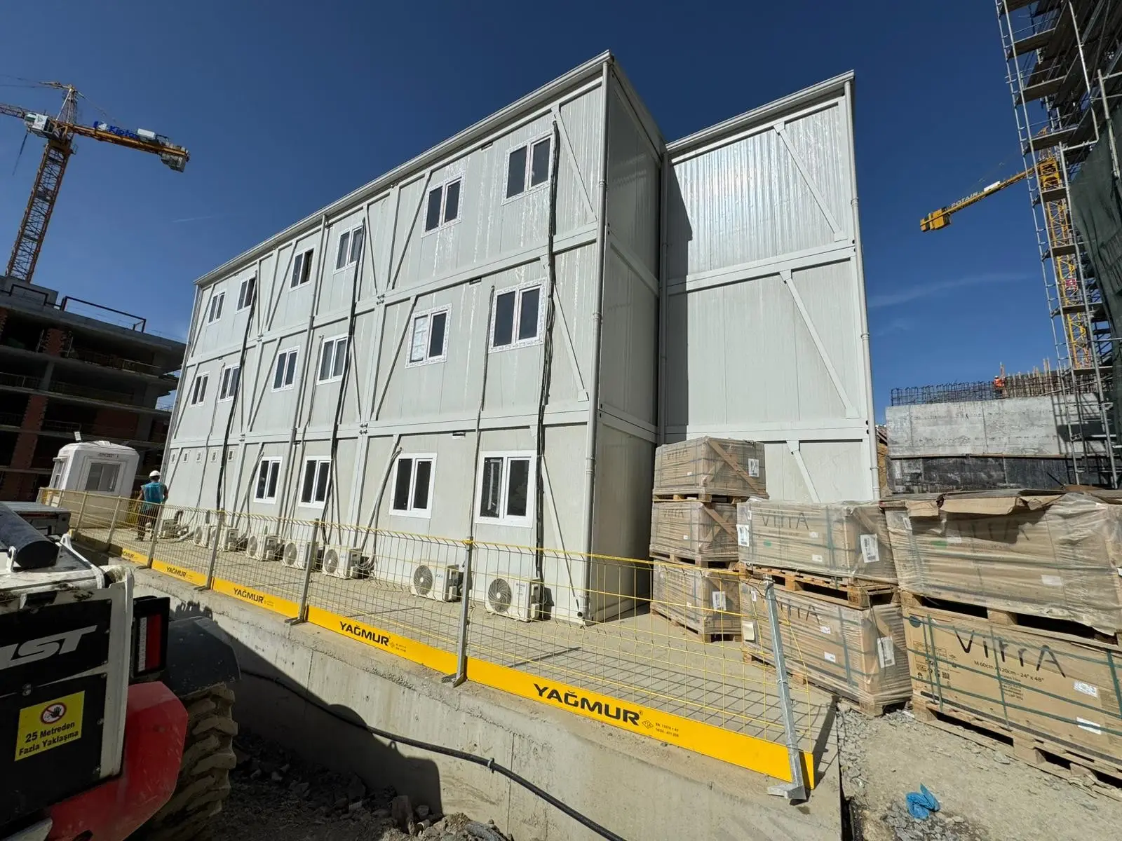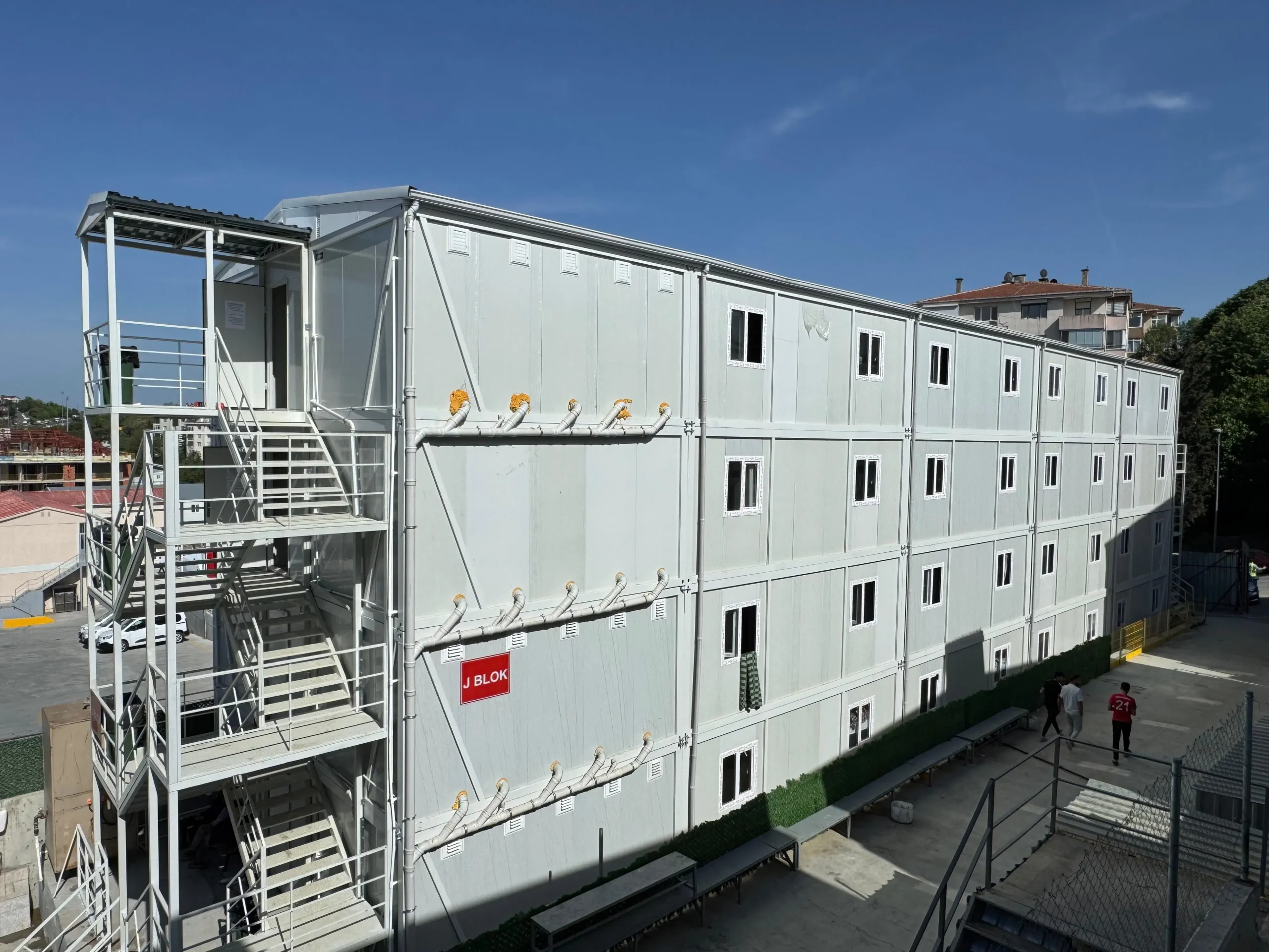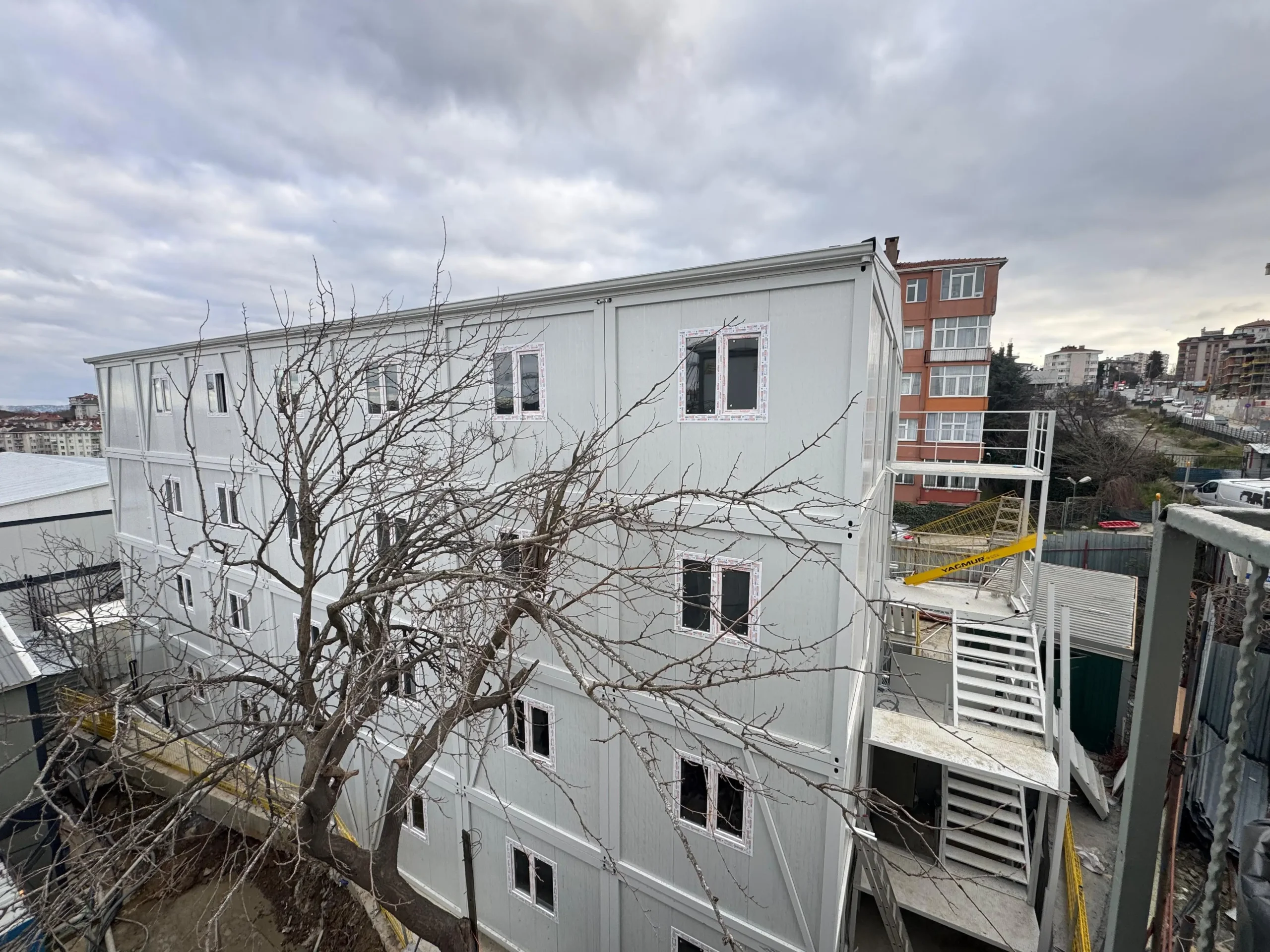 Elproyecto Kent Etiler llama la atención por ser un campamento de movilización de gran capacidad que ofrece soluciones a las necesidades de las obras de construcción a gran escala y se establece en poco tiempo. En el marco de este proyecto, que abarca una superficie total de 4.500 m², se fabricaron y montaron 2 edificios de dormitorios para trabajadores de cuatro plantas y 1 edificio de contenedores de oficinas de tres plantas en sólo 45 días con la experiencia de Pramo Prefabricated y se dejaron listos para su uso.