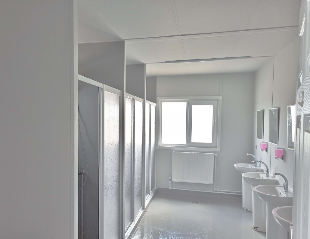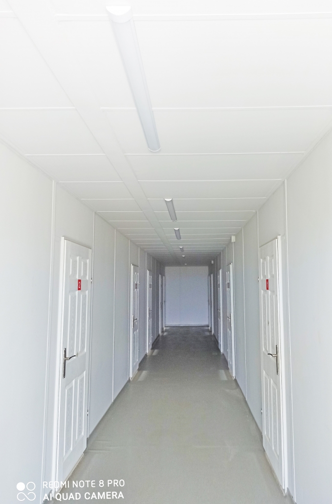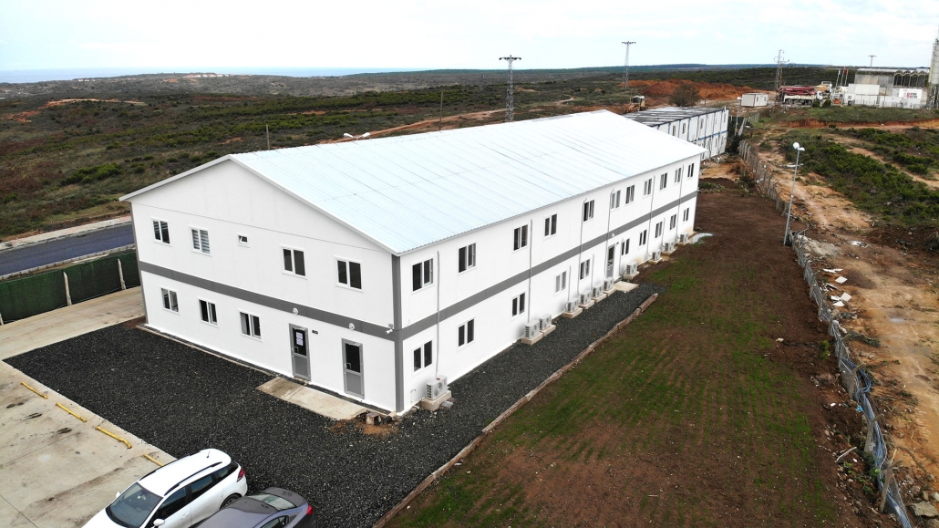 El edificio deoficinas de dirección, con su sección de cafetería integrada, ofrece un uso común tanto a la dirección como al personal. Además, en el marco del proyecto, se desmontaron los 18 contenedores existentes y el edificio de dormitorios para trabajadores, de 3 plantas y 36 contenedores, que se construyó con 18 contenedores de nueva fabricación, ofrece una zona de alojamiento segura y cómoda para los empleados.